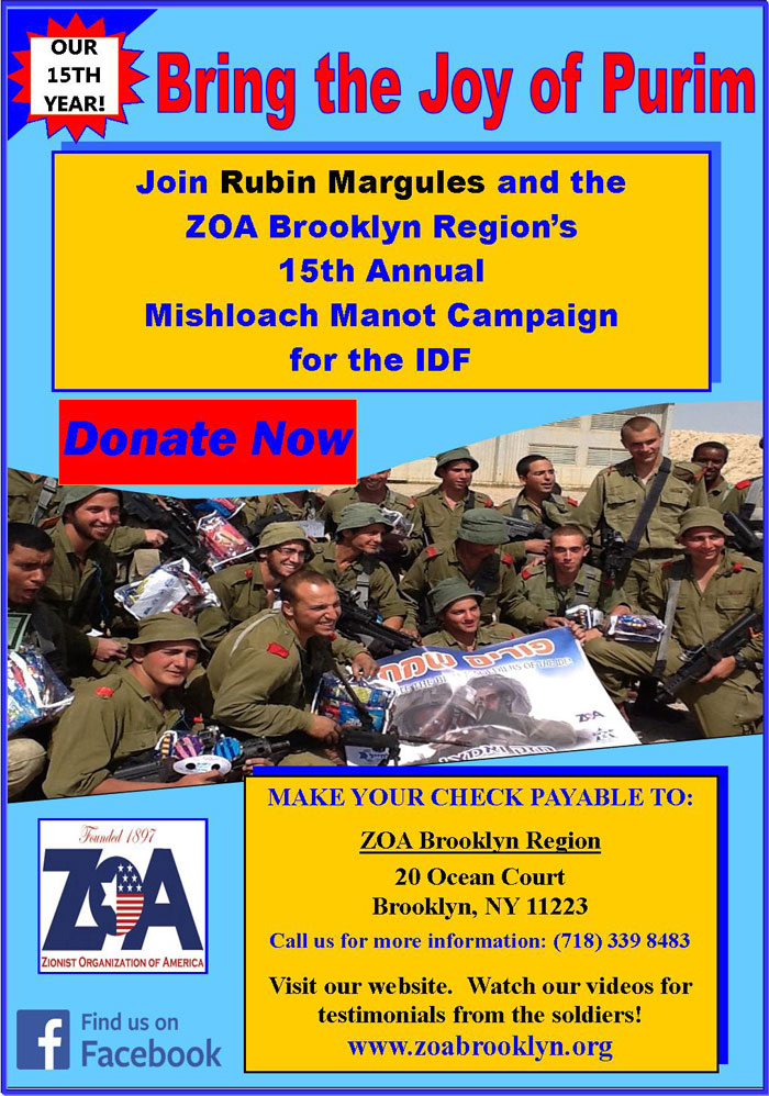 Please help spread the word in regards to ZOA's 15th Mishloach Manot Campaign and World Zionist Congerss 2015 Elections!.